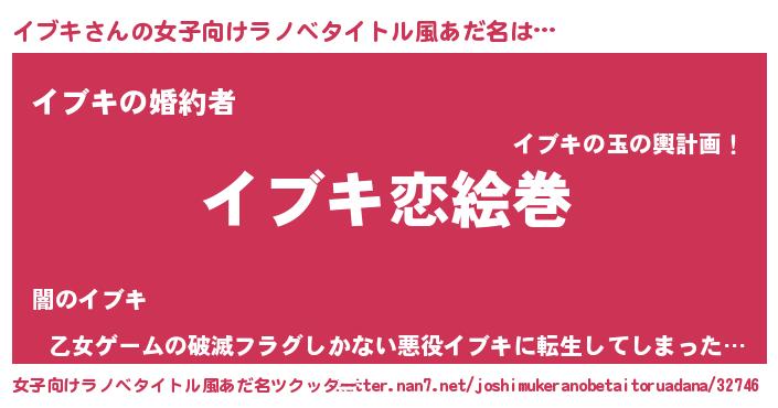 | 男性向けラノベタイトル風あだ名 | 『おまえをオタクにしてやるから、俺をイブキにしてくれ! 』 |