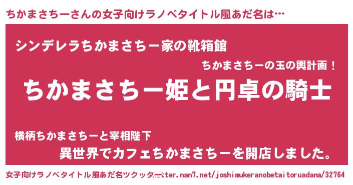 | 男性向けラノベタイトル風あだ名 | 『ちかまさちーの憂鬱』 |