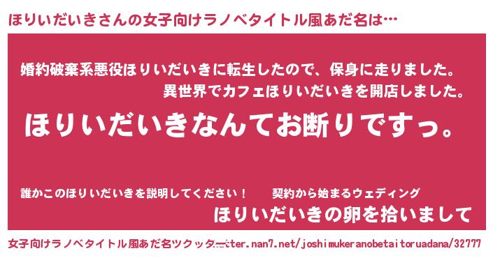| 意味不明あだ名 | 『自称ほりいだいき』 |