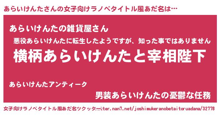 | ヒーロー風カッコイイあだ名 | 『ウルトラあらいけんたマン』 |