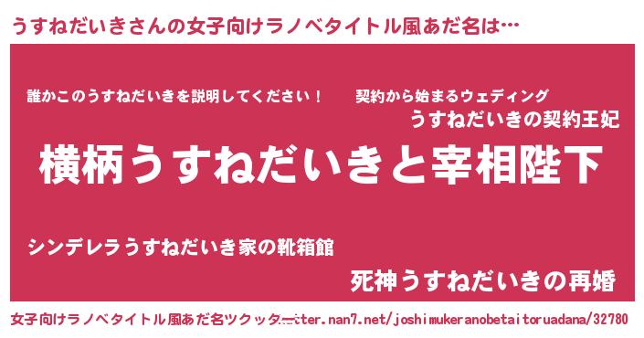 | ヒーロー風カッコイイあだ名 | 『スーパーウスネダイキ』『銀牙騎士ウス』 |