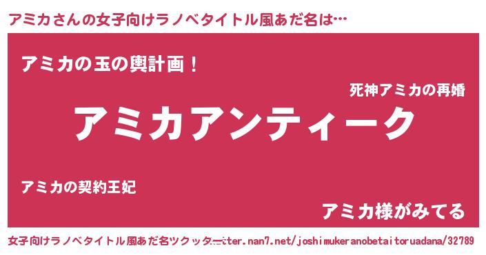 | ヘコむあだ名 | 『アミ太郎』『アミカ(小並感)』 |