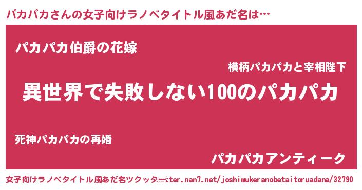 | 男性向けラノベタイトル風あだ名 | 『パカパカという概念が存在しない退屈な世界 』 |