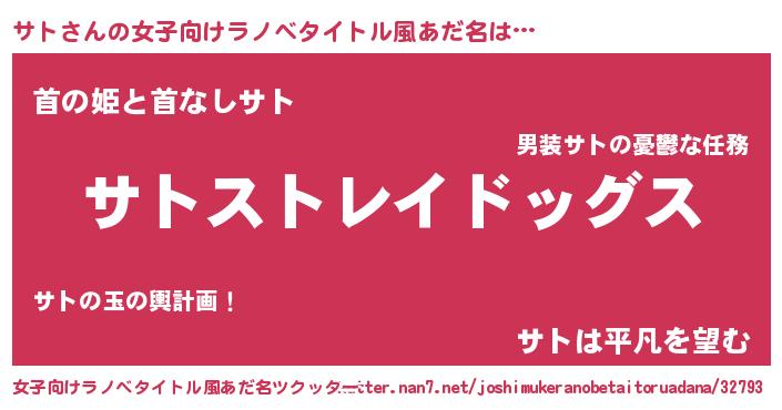 | 男性向けラノベタイトル風あだ名 | 『Re:サトから始める異世界生活』 |