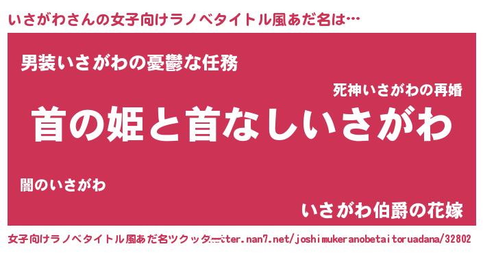 | 男性向けラノベタイトル風あだ名 | 『はたらくいさがわさま!』 |