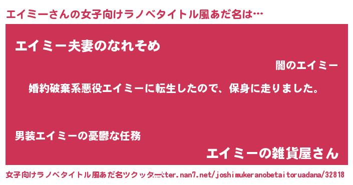 | 男性向けラノベタイトル風あだ名 | 『エイミースレイヤー』 |