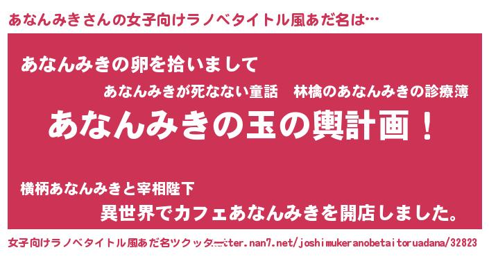 | 男性向けラノベタイトル風あだ名 | 『転生したらあなんみきだった件』 |