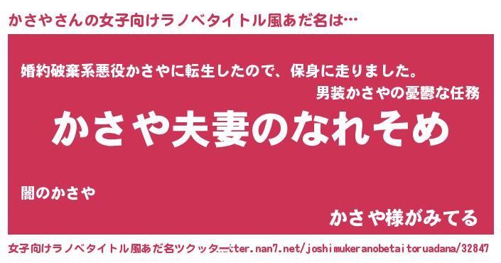 | ヒーロー風カッコイイあだ名 | 『正義の使者かさや』『幻影騎士カサ』 |