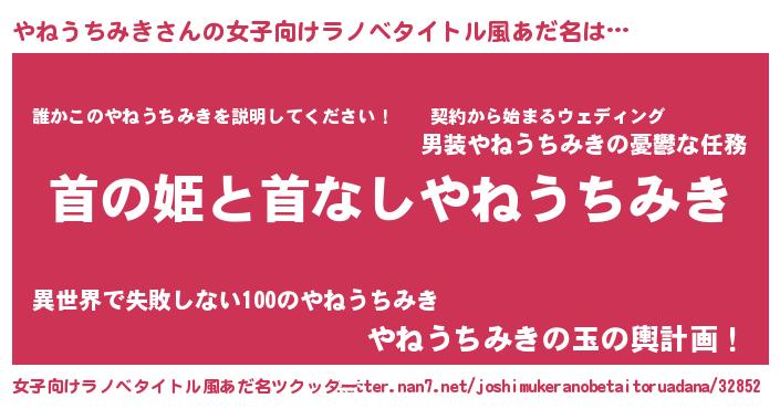 | 男性向けラノベタイトル風あだ名 | 『はたらくやねうちみきさま!』 |