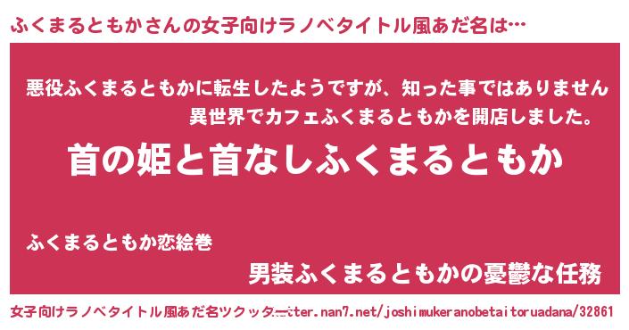 | ヘコむあだ名 | 『ふくまるともか(小並感)』『ふくにゅー』 |