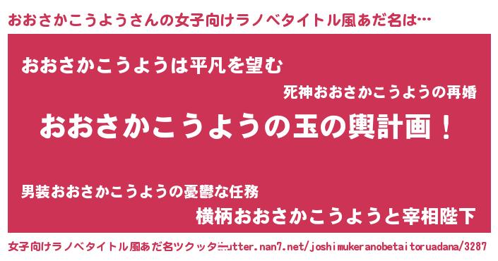 | ヒーロー風カッコイイあだ名 | 『天弓騎士オオ』『ネオオオサカコウヨウ』 |