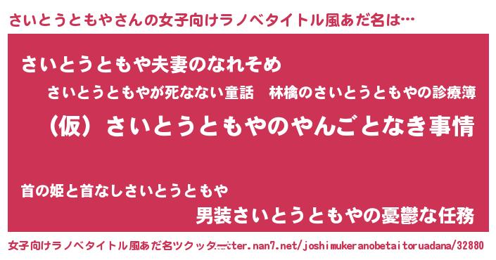 | 胡散臭い通販商品みたいなあだ名 | 『必ず成功する水晶球…その名も「さいとうともや」』 |