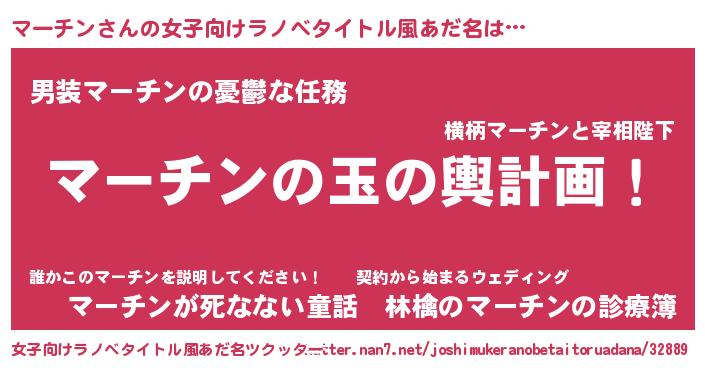 | 男性向けラノベタイトル風あだ名 | 『マーチン~年齢イコール彼女いない歴の魔法使い~』 |
