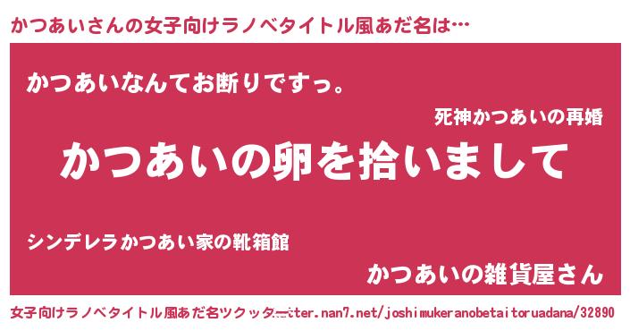 | 胡散臭い通販商品みたいなあだ名 | 『伝統あるサプリメント…その名も「かつあい」』 |