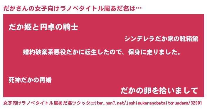 | 胡散臭い通販商品みたいなあだ名 | 『必ず成功する水晶球…その名も「だか」』 |