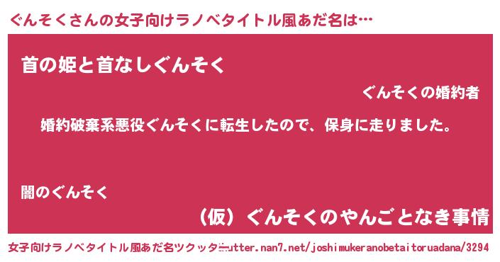 | 男性向けラノベタイトル風あだ名 | 『転生したらぐんそくだった件』 |