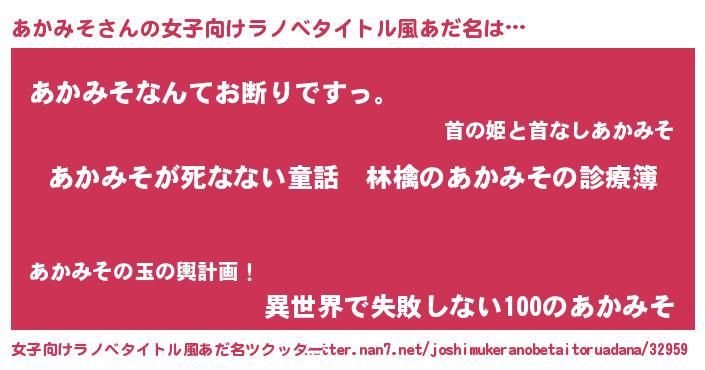 | 意味不明あだ名 | 『住所不定無職あかみそ(56歳)』 |
