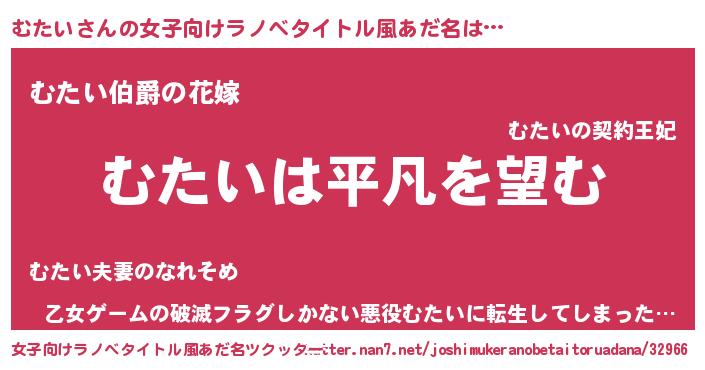 | 男性向けラノベタイトル風あだ名 | 『ダンジョンにむたいを求めるのは間違っているだろうか』 |