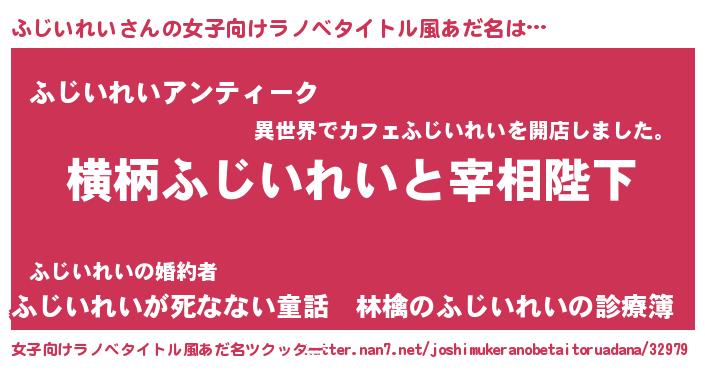 | 意味不明あだ名 | 『自称ふじいれい』『永久保存ふじいれい』 |