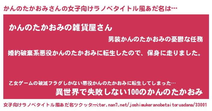 | 男性向けラノベタイトル風あだ名 | 『転生したらかんのたかおみだった件』 |