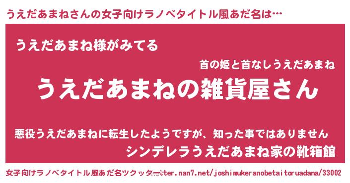 | ポケモン風あだ名 | 『ウエダダネ』『ヒウエダアマネ』 |