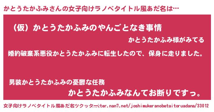 | 胡散臭い通販商品みたいなあだ名 | 『必ず成功する水晶球…その名も「かとうたかふみ」』 |