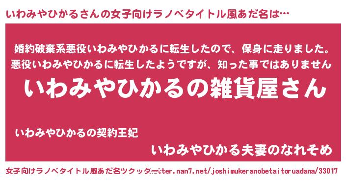 | 男性向けラノベタイトル風あだ名 | 『やはりいわみやひかるの青春ラブコメはまちがっている 』 |