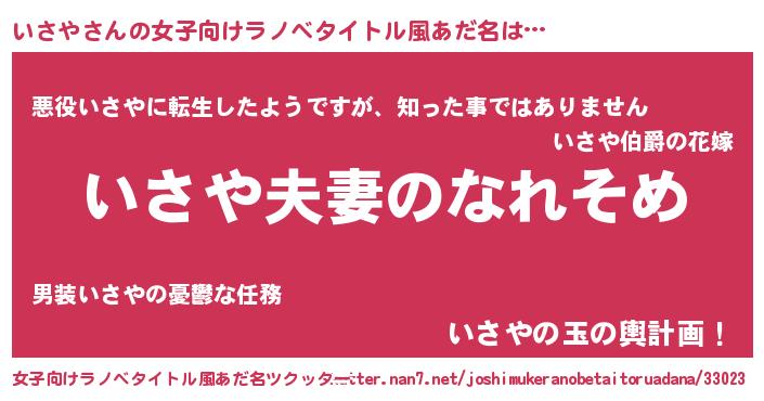 | 市区町村名 | 『いさ島市』『京いさ市』『福いさ市』 |