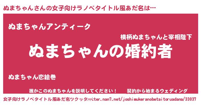 | ファンタジー風あだ名 | 『エターナルヌマチャンー』『ゼヌマトゥ』 |