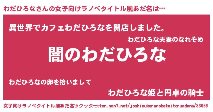 | 男性向けラノベタイトル風あだ名 | 『Re:わだひろなから始める異世界生活』 |