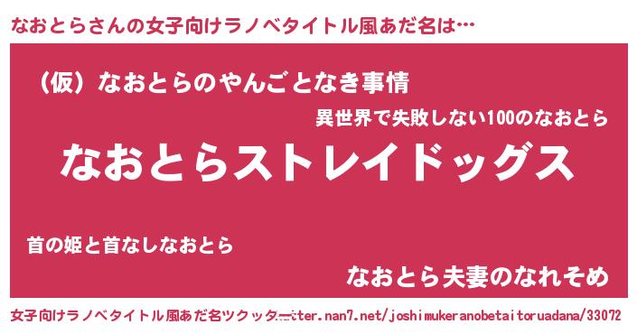 | 男性向けラノベタイトル風あだ名 | 『Re:なおとらから始める異世界生活』 |