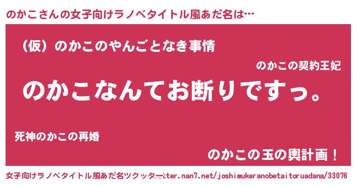 | 男性向けラノベタイトル風あだ名 | 『魔法科高校ののかこ』『のかこの憂鬱』 |