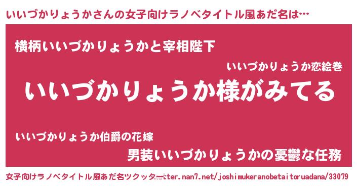 | ポケモン風あだ名 | 『ヒイイヅカリョウカ』『イイゴンZ』 |