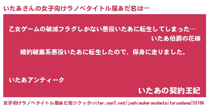 | 男性向けラノベタイトル風あだ名 | 『転生したらいたあだった件』 |