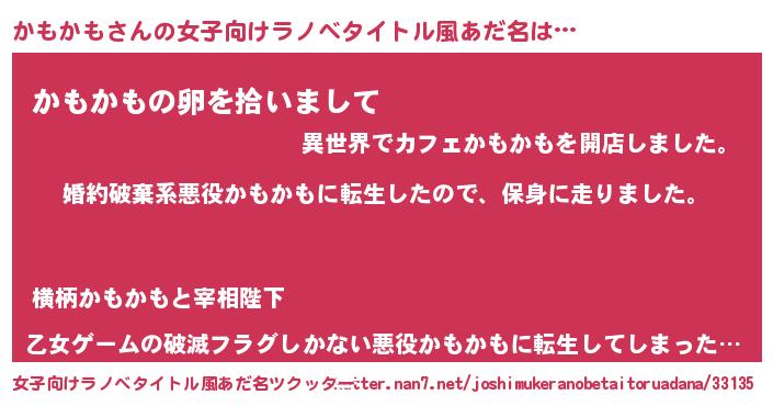 | 男性向けラノベタイトル風あだ名 | 『転生したらかもかもだった件』 |