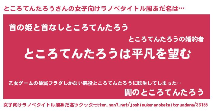 | 男性向けラノベタイトル風あだ名 | 『ダンジョンにところてんたろうを求めるのは間違っているだろうか』 |