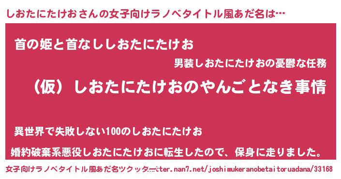 | 男性向けラノベタイトル風あだ名 | 『しおたにたけおの憂鬱』 |