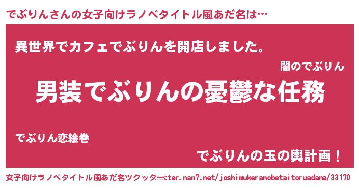 | 男性向けラノベタイトル風あだ名 | 『うちのでぶりんが世界を掌握している!』 |