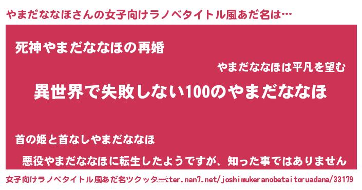 | 男性向けラノベタイトル風あだ名 | 『やまだななほという概念が存在しない退屈な世界 』 |