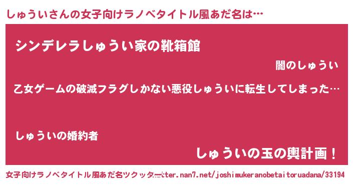 | 意味不明あだ名 | 『住所不定無職しゅうい(5歳)』 |