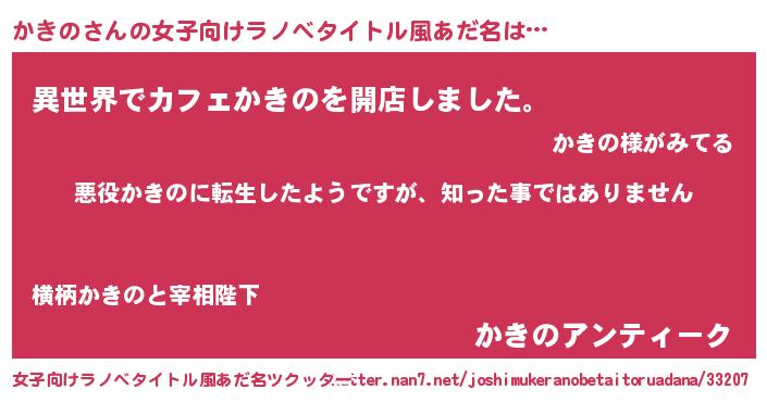 | 男性向けラノベタイトル風あだ名 | 『この素晴らしい世界にかきのを!』 |