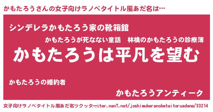 | 男性向けラノベタイトル風あだ名 | 『ダンジョンにかもたろうを求めるのは間違っているだろうか』 |