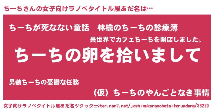 | 男性向けラノベタイトル風あだ名 | 『ダンジョンにちーちを求めるのは間違っているだろうか』 |