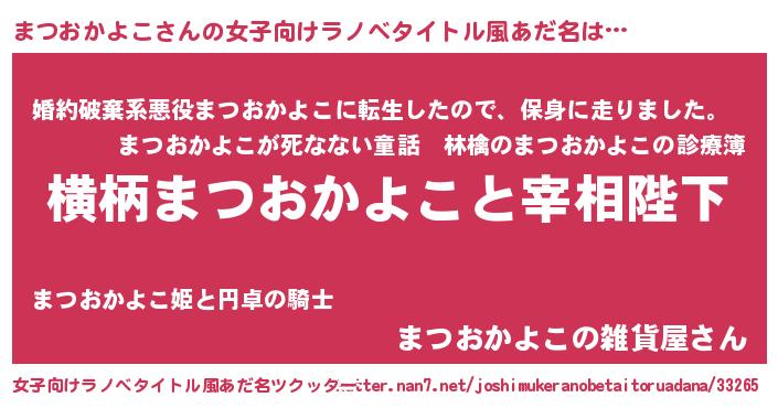 | 男性向けラノベタイトル風あだ名 | 『まつおかよこに滅ぼされるだけの簡単なお仕事です』 |