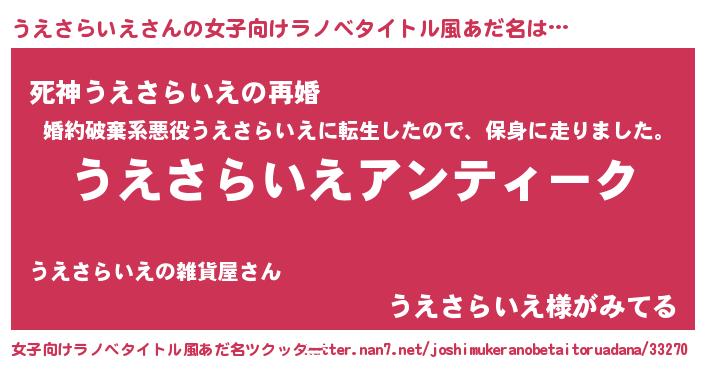 | 胡散臭い通販商品みたいなあだ名 | 『ガンによく効くアガリクス…その名も「うえさらいえ」』 |