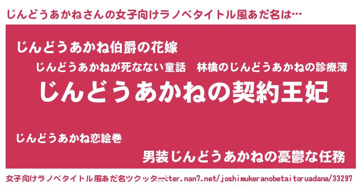 | 男性向けラノベタイトル風あだ名 | 『じんどうあかねという概念が存在しない退屈な世界 』 |