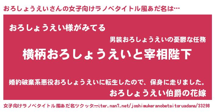 | 男性向けラノベタイトル風あだ名 | 『おろしょうえいに滅ぼされるだけの簡単なお仕事です』 |