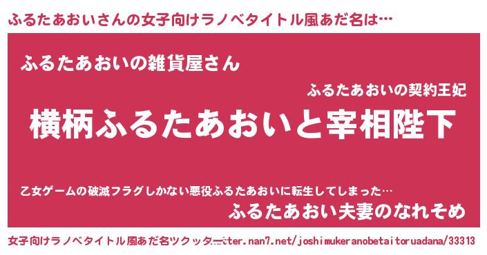 | 男性向けラノベタイトル風あだ名 | 『ふるたあおいに滅ぼされるだけの簡単なお仕事です』 |