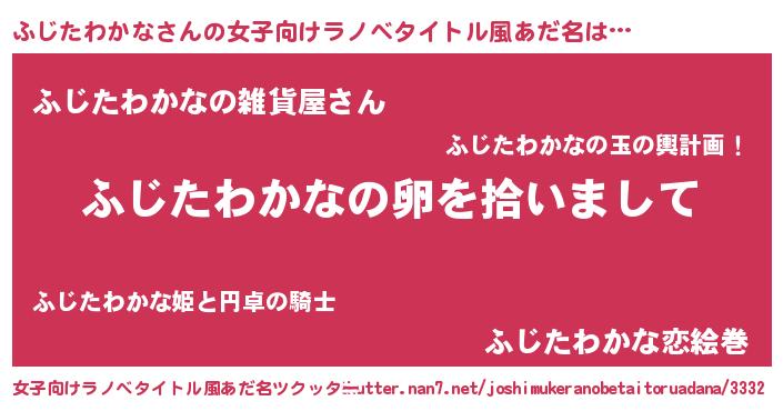 | 男性向けラノベタイトル風あだ名 | 『ふじたわかなの嫁は女の子じゃないと思った?』 |