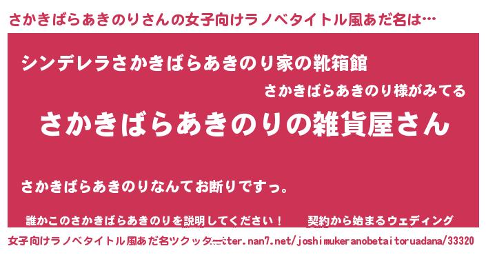 | 男性向けラノベタイトル風あだ名 | 『やはりさかきばらあきのりの青春ラブコメはまちがっている 』 |